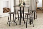 Rustic Industrial Style 5pc Counter Height Set Round Table and 4 Stools Gray Metal Finish Furniture