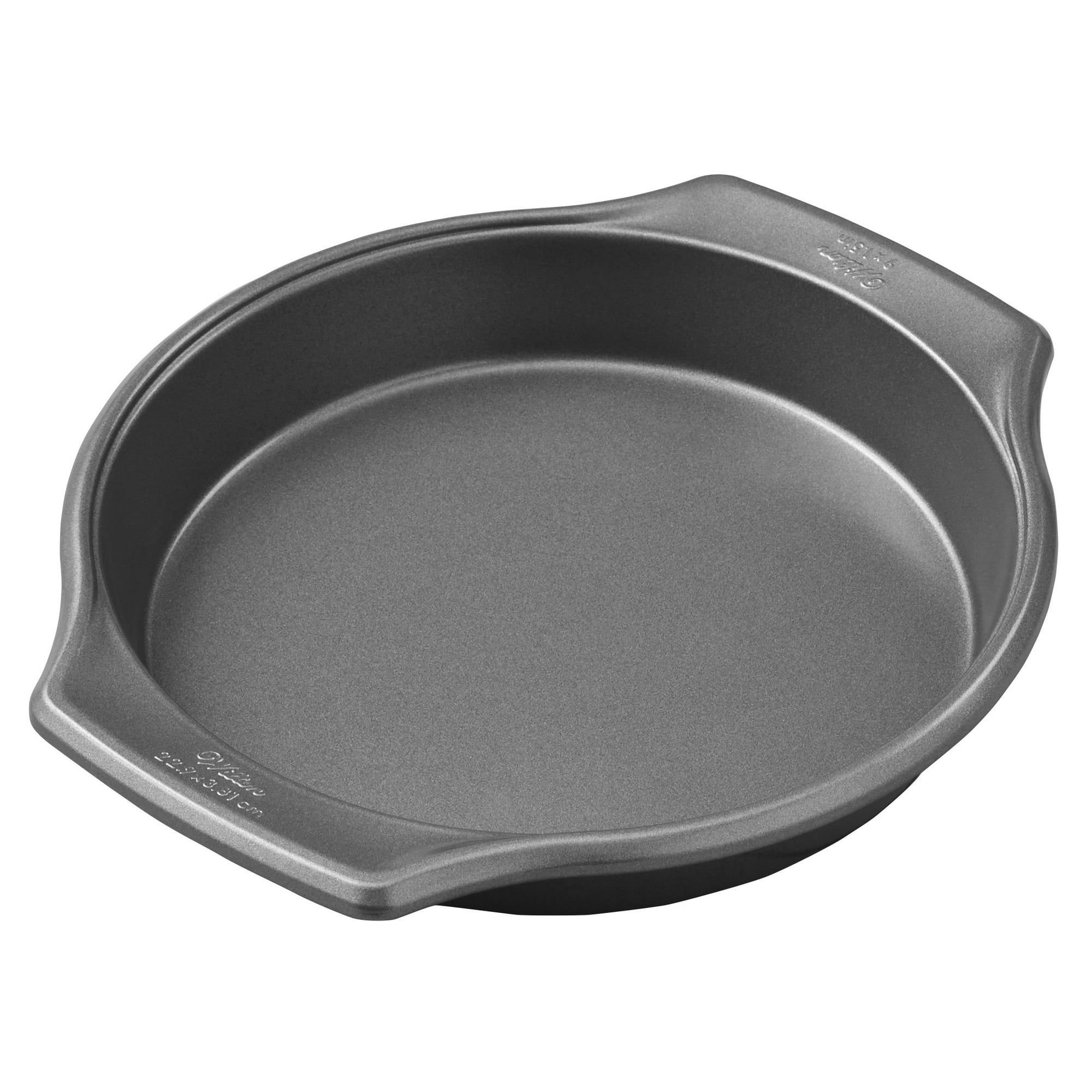 Make cakes worthy of celebrating with this Wilton Bake it Better Non-Stick Round 9 in. Cake Pan. Great for wedding cakes, birthday cakes, layered cakes and more, this circle pan is a must-have for bakers and decorators. This 9-inch round cake pan offers better heating, better handling and better release. Constructed of durable heavyweight steel, this pan offers dependable, even heating throughout the years. The ergonomic handles are easier and safer to hold time after time and the long-lasting non-stick coating makes serving and cleanup easy throughout continued use. Use it with your favorite cake mix or recipe, or make a large brownie, cookie or ice cream cake!